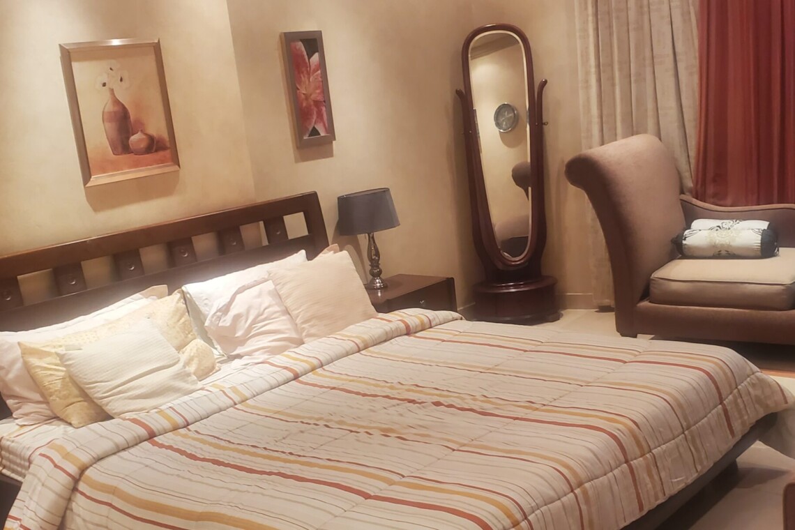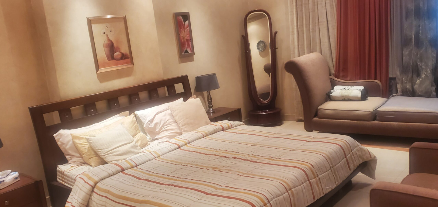 يتميز بأثاث فخم وأجهزة كهربائية عالية الجودة، كما يحتوي على أدوات مطبخ متكاملة.